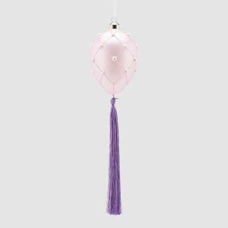 EDG Enzo De Gasperi Decorazione di Pasqua Uovo con Perle e Nappa 11x8cm Lilla Vetro