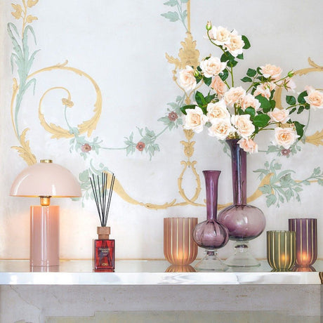 EDG Enzo De Gasperi Goldlily Candle with Glass Dome 13cm Soft Pink Roses Pink
