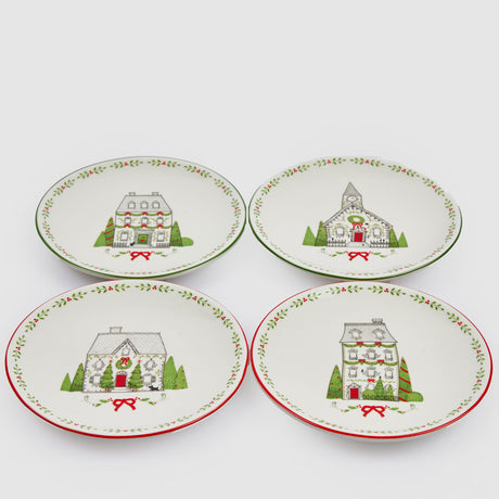 EDG Enzo De Gasperi Piatti Dessert Christmas Set 4 Pezzi 15cm Porcellana Tavola di Natale