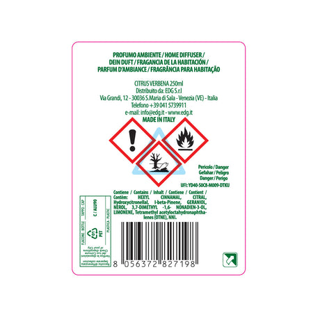 EDG Enzo De Gasperi Refill Refill Lux Perfumer Diffuser 250ml Citrus Verbena