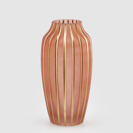 EDG Enzo De Gasperi Antique Rose Gold Striped Vase 15x30cm Glass