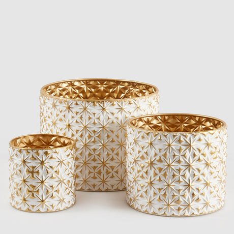 EDG Enzo De Gasperi Vaso Stelle Rotondo 3 Pezzi Bianco Oro Metallo