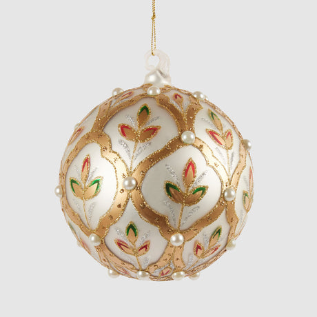 EDG Enzo De Gasperi Addobbo Pallina Fiori 12cm Bianco Oro Vetro