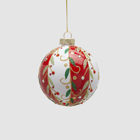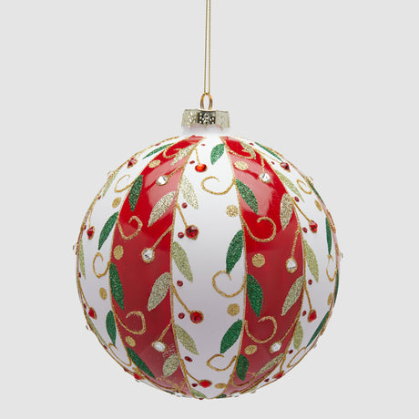 EDG Enzo De Gasperi Addobbo Pallina Sfera di Natale Fasce Vischio 15cm Vetro