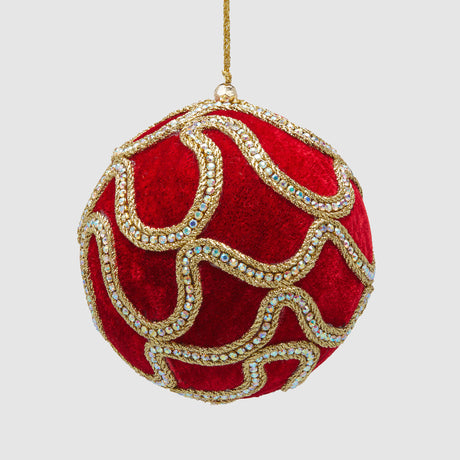EDG Enzo De Gasperi Addobbo Pallina Sfera di Natale Decogemme 12cm Rosso Oro Velluto