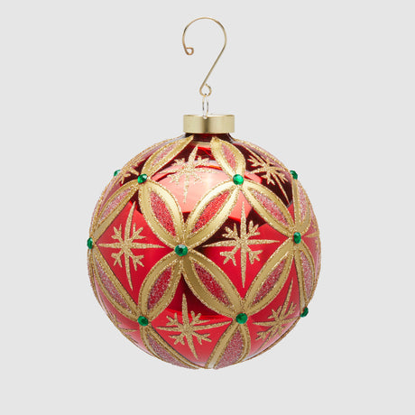 EDG Enzo De Gasperi Addobbo Pallina Sfera di Natale Rubini 12cm Oro Rosso Vetro
