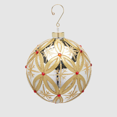 EDG Enzo De Gasperi Addobbo Pallina Sfera di Natale Rubini 12cm Oro Argento Vetro