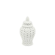 POTICHE SHAPE VASE WITH HAND CARVED WHITE CERAMIC STRUCTURE.
