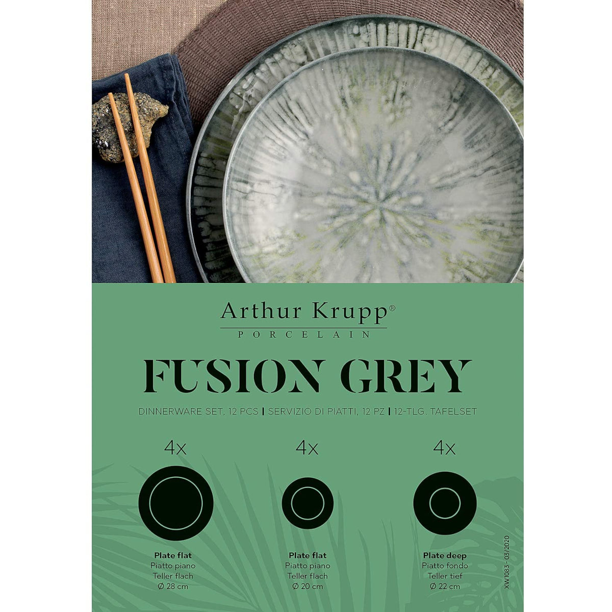 ARTHUR KRUPP Set 12 Piece Dinner Service Fusion Gray Porcelain
