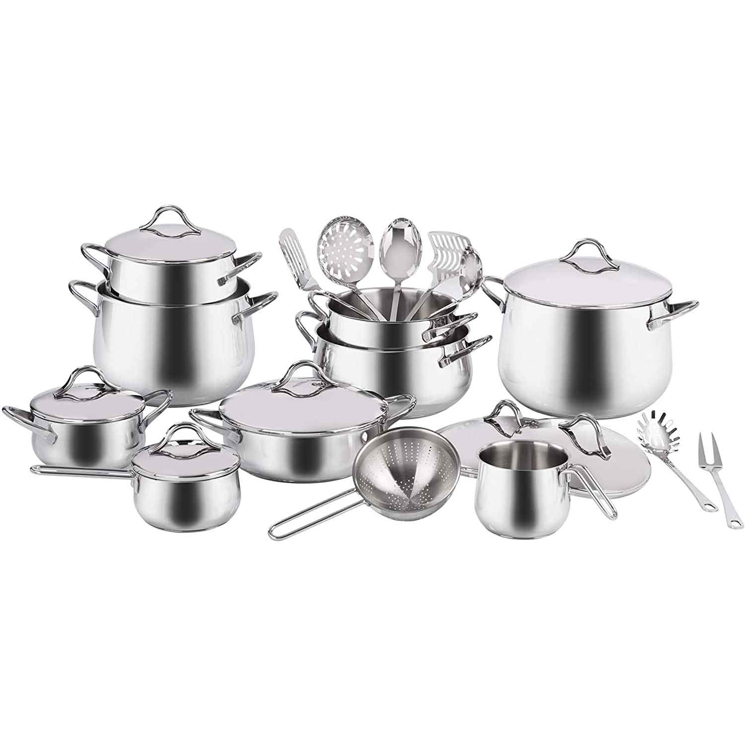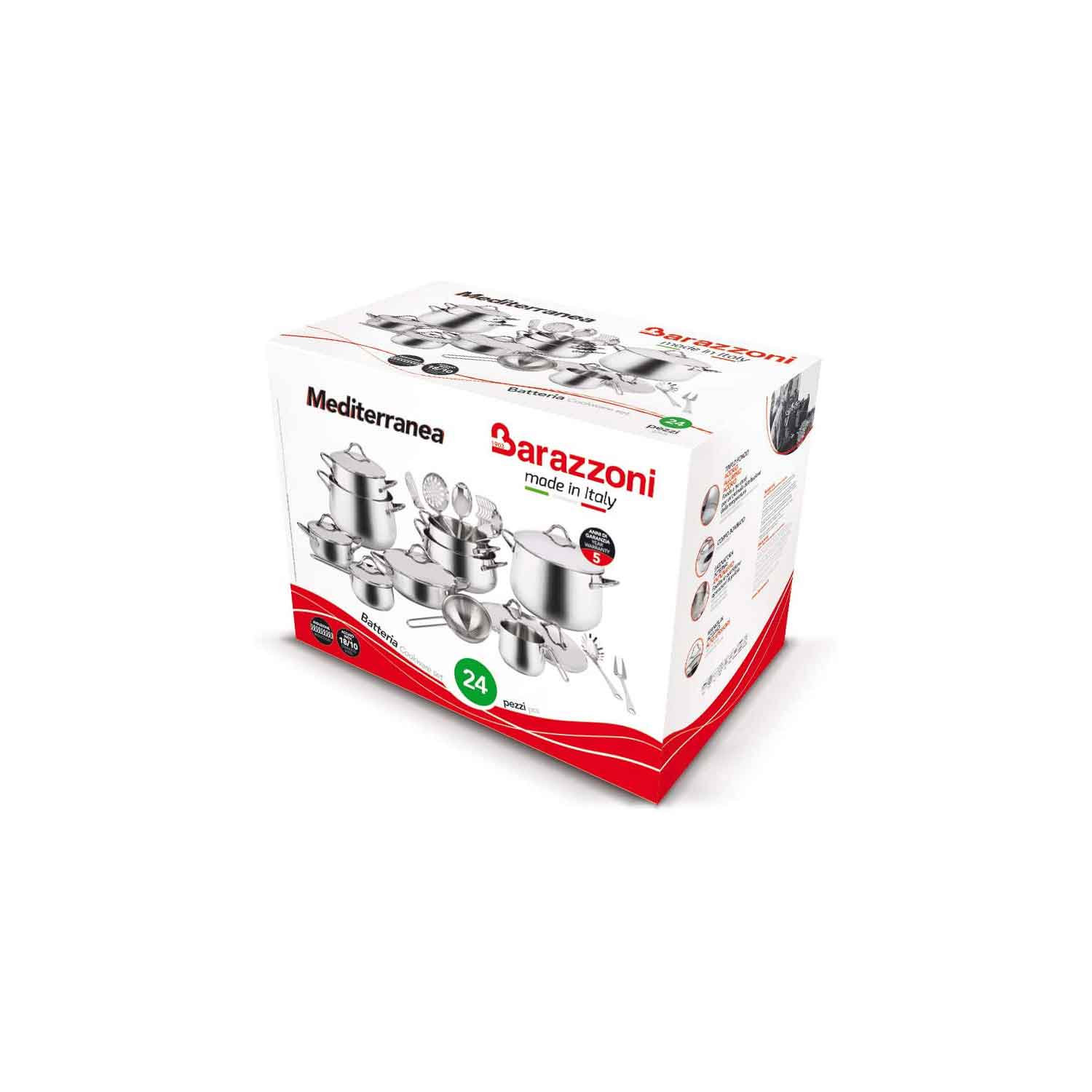 BARAZZONI Mediterranea Cookware Set 24 Pieces Stainless Steel Made in Italy