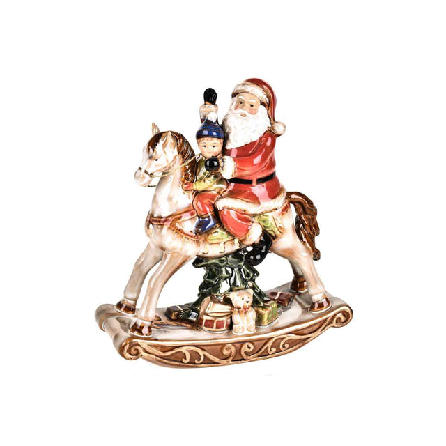 BIANCHI DINO Santa Claus on Rocking Horse Christmas Decoration 25cm Porcelain
