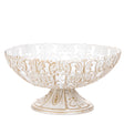 La base con piede aggiunge un tocco di maestosità, mentre i dettagli dorati donano una luminosità sofisticata. Ideale come punto focale per composizioni floreali o candele, questo centrotavola regala un'atmosfera di lusso discreto, rendendo ogni evento un momento di pura bellezza e stile.