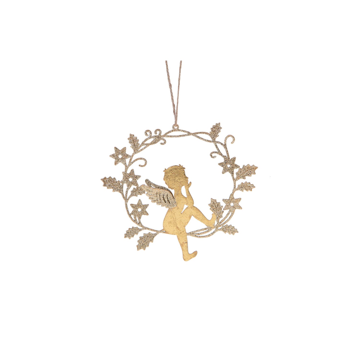 BIANCHI DINO Pendant Decoration with Angel Chaplet in Metal 16cm Gold