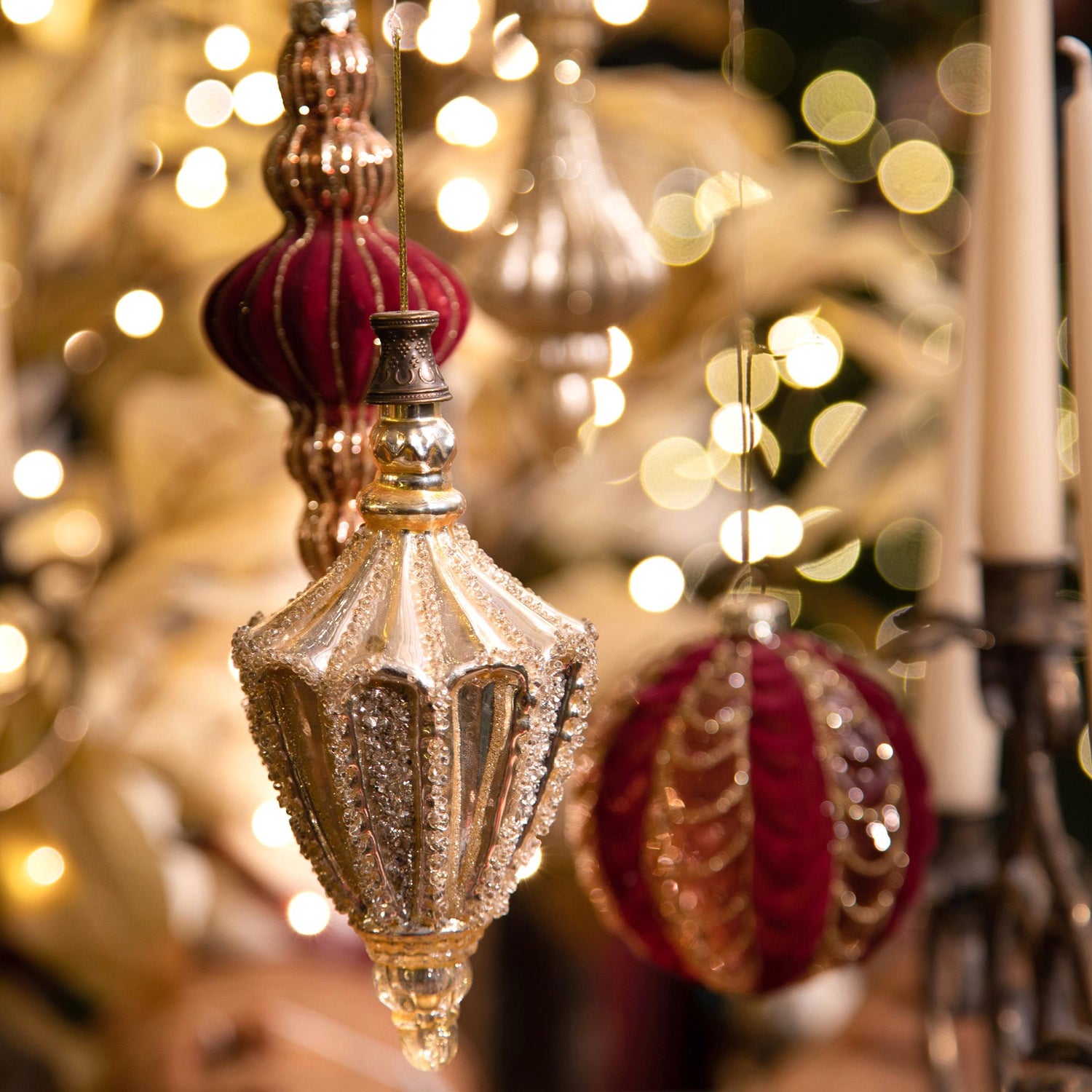 BIANCHI DINO Glass Christmas Tree Pendant Sphere with Glitter 18cm Gold