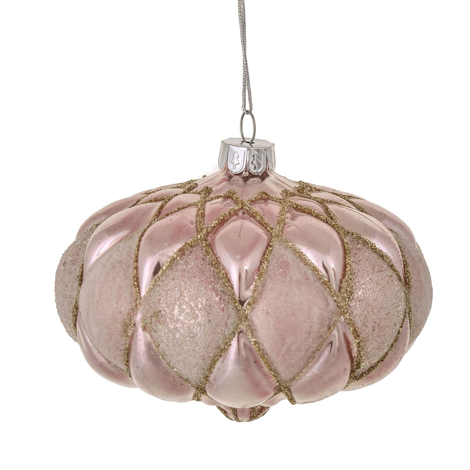BIANCHI DINO Christmas Tree Pendant Sphere in Diamond Glass 10cm Pink