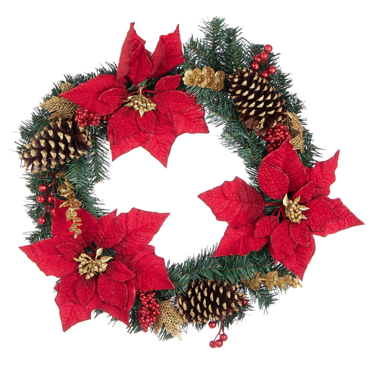 BIZZOTTO - Christmas Garland Josie Poinsettia Crown Red Gold 55 cm PVC