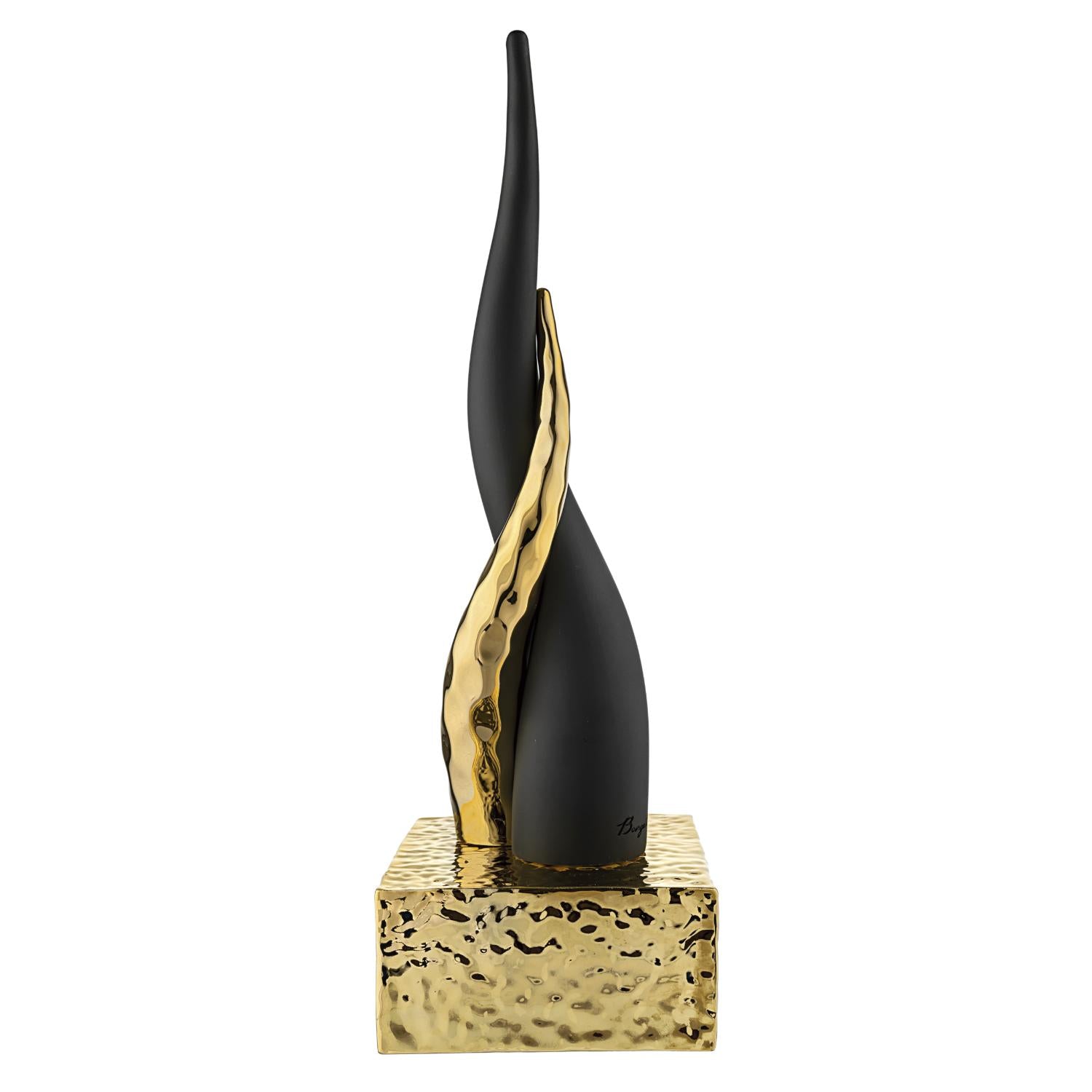 BONGELLI PREZIOSI Cornetto Corni Intrecciati Base Oro Corno Nero 20cm Marmorino