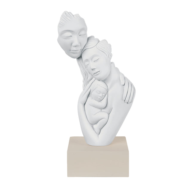 BONGELLI PREZIOSI Figure Modern Statue Birth Family 27cm White Hazelnut Base Marmorino