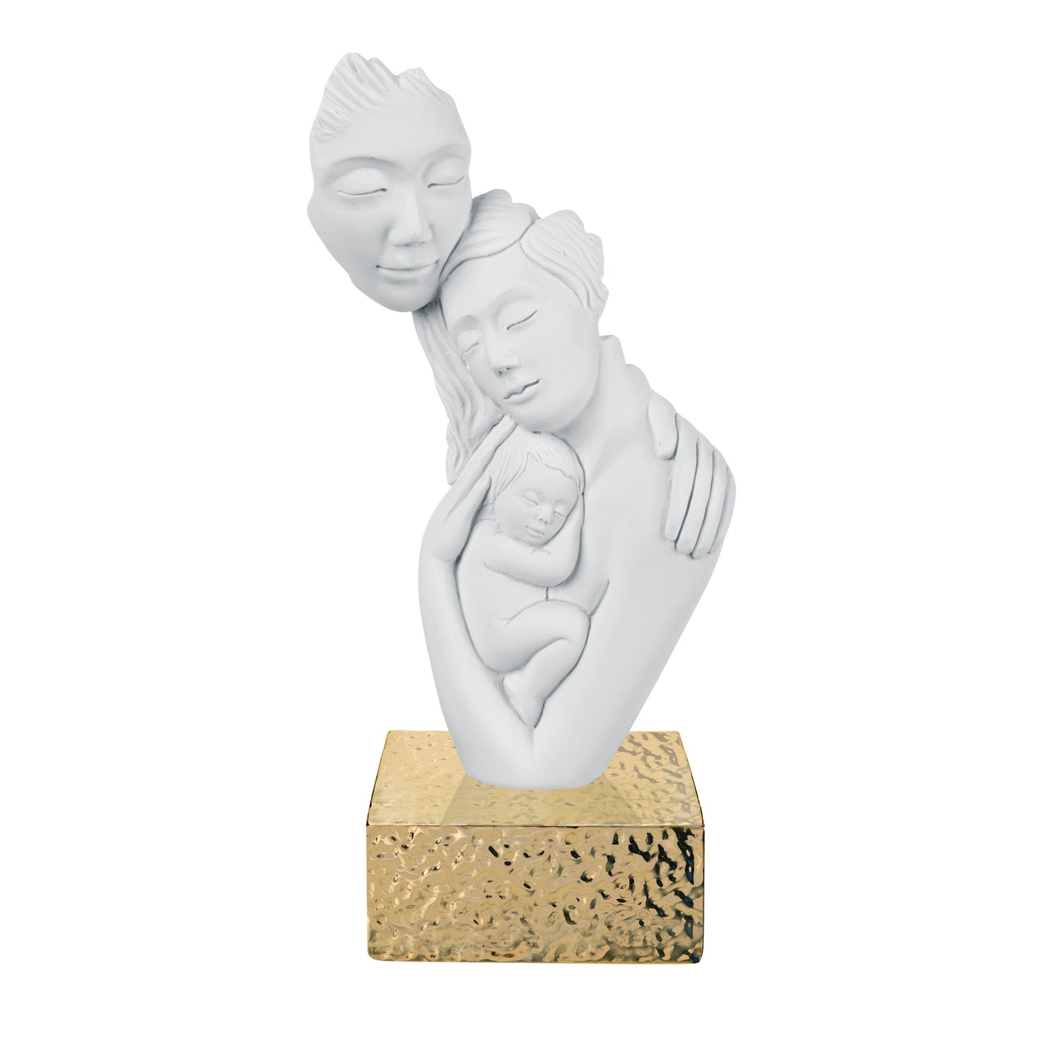 BONGELLI PREZIOSI Figure Modern Statue Birth Family 27cm White Marmorino Gold Base