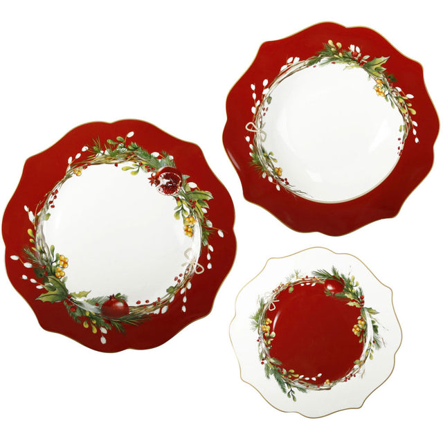 BRANDANI Carol Servizio Tavola Natalizio Piatti Set 18 Pezzi Porcellana Tavola di Natale