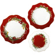 Il set di 18 piatti della collezione Carol di Brandani è un must-have per rendere le tue cene natalizie davvero indimenticabili. Con bordi smerlati in rosso vivace e un delicato motivo di agrifoglio arricchito da bacche rosse, questi piatti portano un tocco festivo e raffinato alla tua tavola.