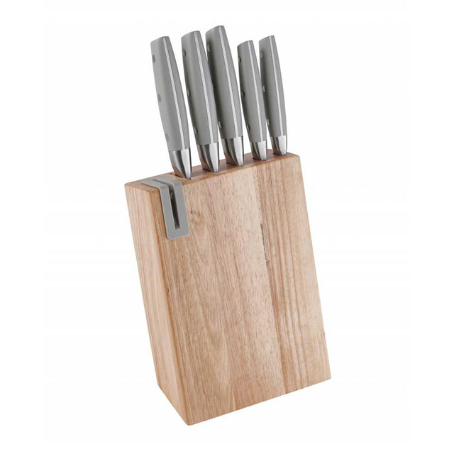 BRANDANI Natural Wooden Block with 5 Knives and Knife Sharpener