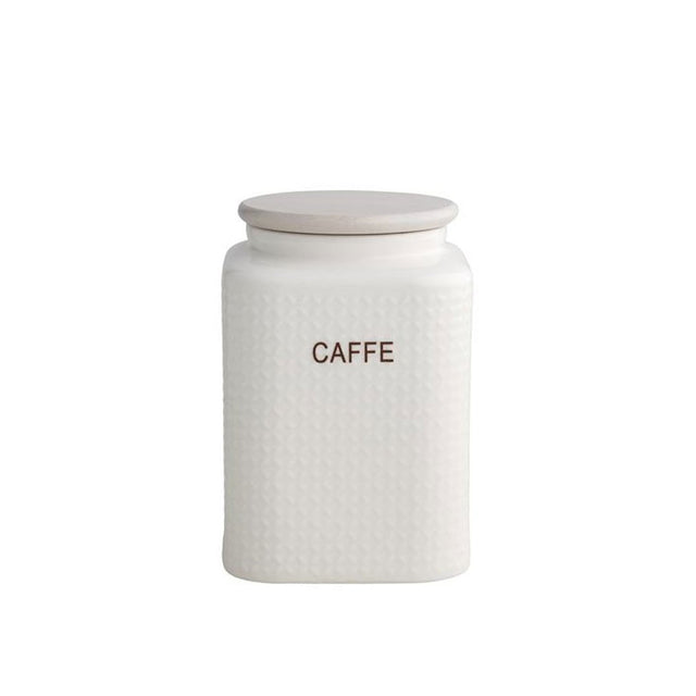 BRANDANI Coffee Jar Container 15cm Porcelain with Bamboo Cap