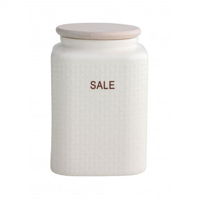 BRANDANI Salt Jar Container 15cm Porcelain with Bamboo Cap