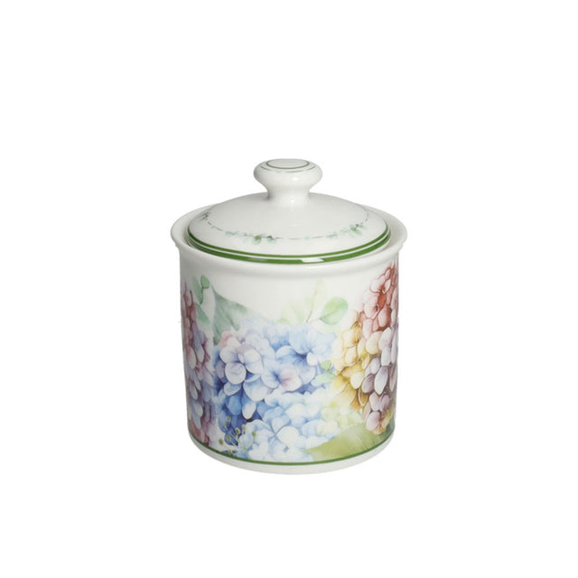 Aggiungi un tocco di eleganza e raffinatezza alla tua tavola con la zuccheriera della collezione Flora di Brandani. Realizzata in pregiata porcellana, è impreziosita da un delicato decoro floreale con ortensie, che dona freschezza e stile a ogni momento di convivialità.