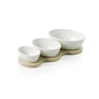 The Brandani galaxy appetizer plate, made of white porcelain, is equipped with a practical natural bamboo support, a perfect combination of materials that enhances its quality. Three porcelain bowls of different sizes make up the Brandani galaxy appetizer which, together with the bamboo support, gives the table elegance and charm. Practical and spacious, the Brandani galaxy antipasto bowls allow you to present different types of appetizers and savory snacks on the table.