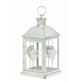 BRANDANI - White Metal Glass Heart Lantern 37.5cm 53318