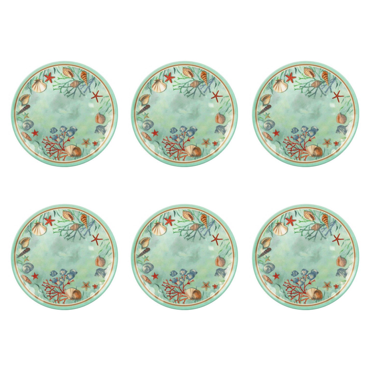 BRANDANI Marine Reef Dinner Plate Set 6 Pieces 27cm Light Blue Melamine