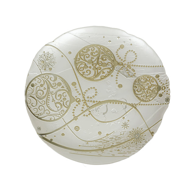 BRANDANI Regalomagia Tray Plate 32cm Glass White Gold Christmas Table