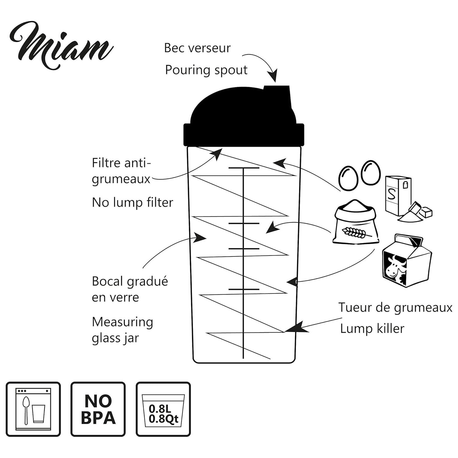 Lo shaker Miam è dotato di una spirale in acciaio inox che ti garantirà un impasto per frittelle fluido e assolutamente senza grumi. Dotato inoltre di una griglia aggiuntiva anti-grumi da aggiungere al momento di versare l'impasto per frittelle nella padella. Per ottenere delle frittelle sempre perfette!