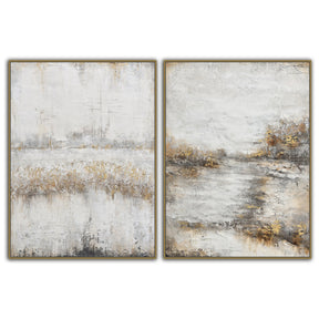 Questo quadro astratto di Drimmer, realizzato su tela e composto da due pannelli, è un'opera raffinata che unisce modernità ed eleganza. Le pennellate materiche e i dettagli in rilievo creano un gioco di luci e ombre, donando profondità e dinamismo alla composizione.