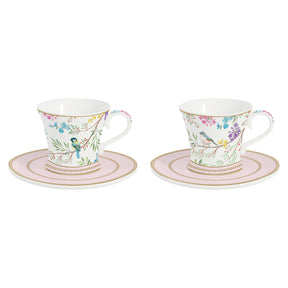 EASY LIFE Birds Melody Set 2 Tazzine Caffè Espresso 80ml con Piattino Porcellana
