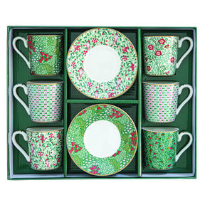 EASY LIFE Floral Fantasy Set 6 Pieces Espresso Coffee Cups with Saucer 100ml Porcelain
