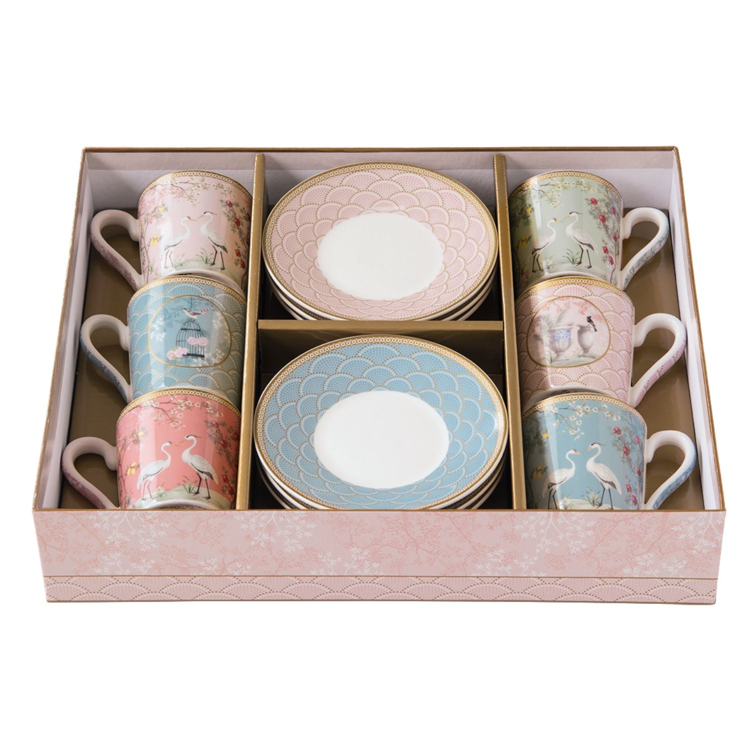 EASY LIFE Jardin De Reves Set 6 Pieces Espresso Coffee Cups with Saucer 100ml Porcelain