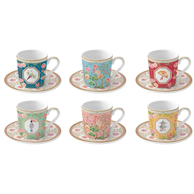 EASY LIFE Jardins d'Orient Set 6 Tazzine Espresso 100ml con Piattini Porcellana