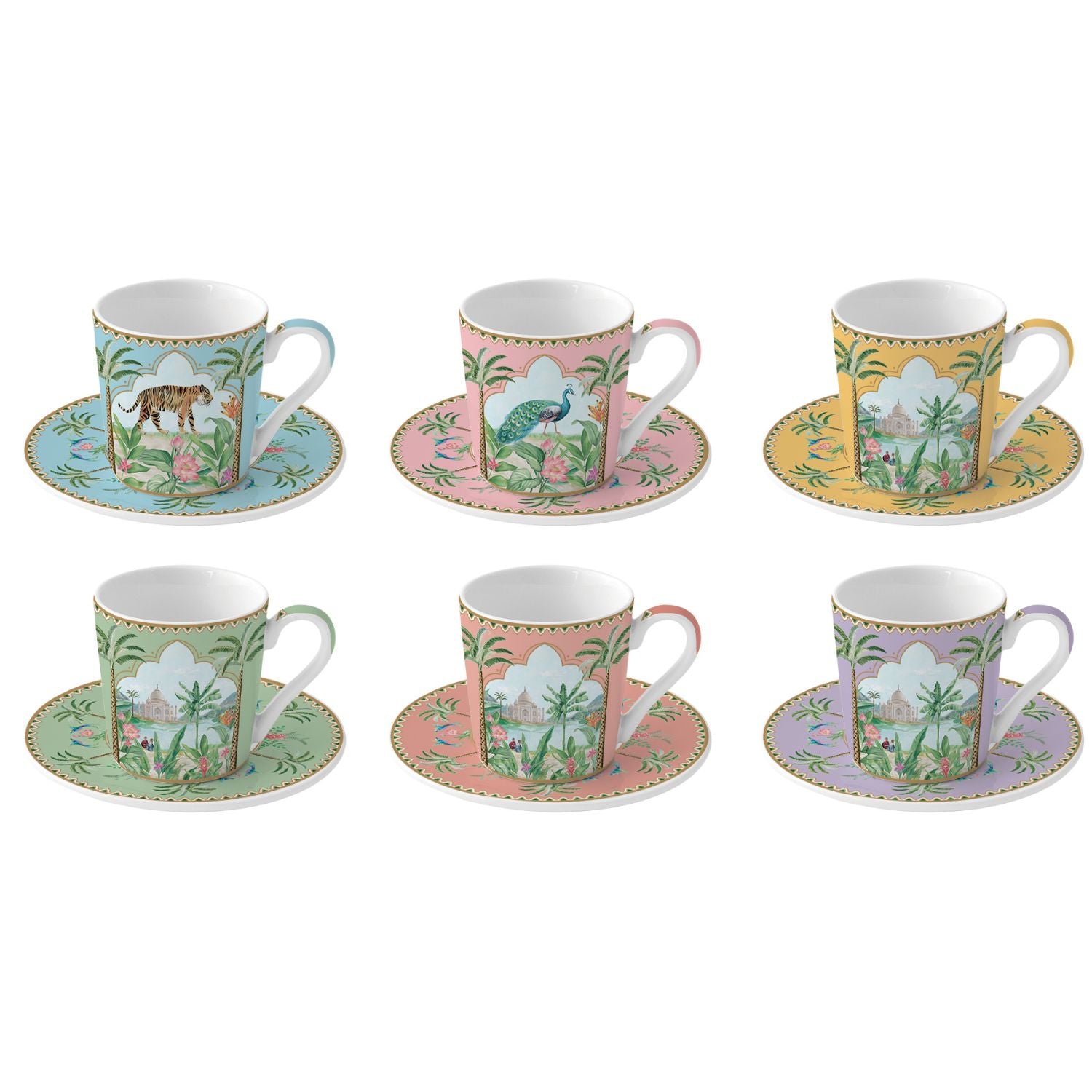 EASY LIFE Paradise Sauvage Set 6 Pieces Espresso Coffee Cups with Saucer 100ml Porcelain