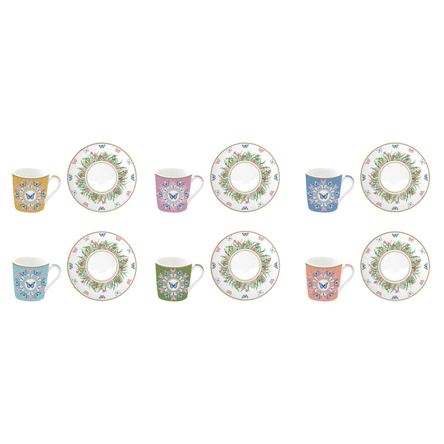 EASY LIFE Spring Parade Set 6 Tazzine Espresso 100ml con Piattini Porcellana