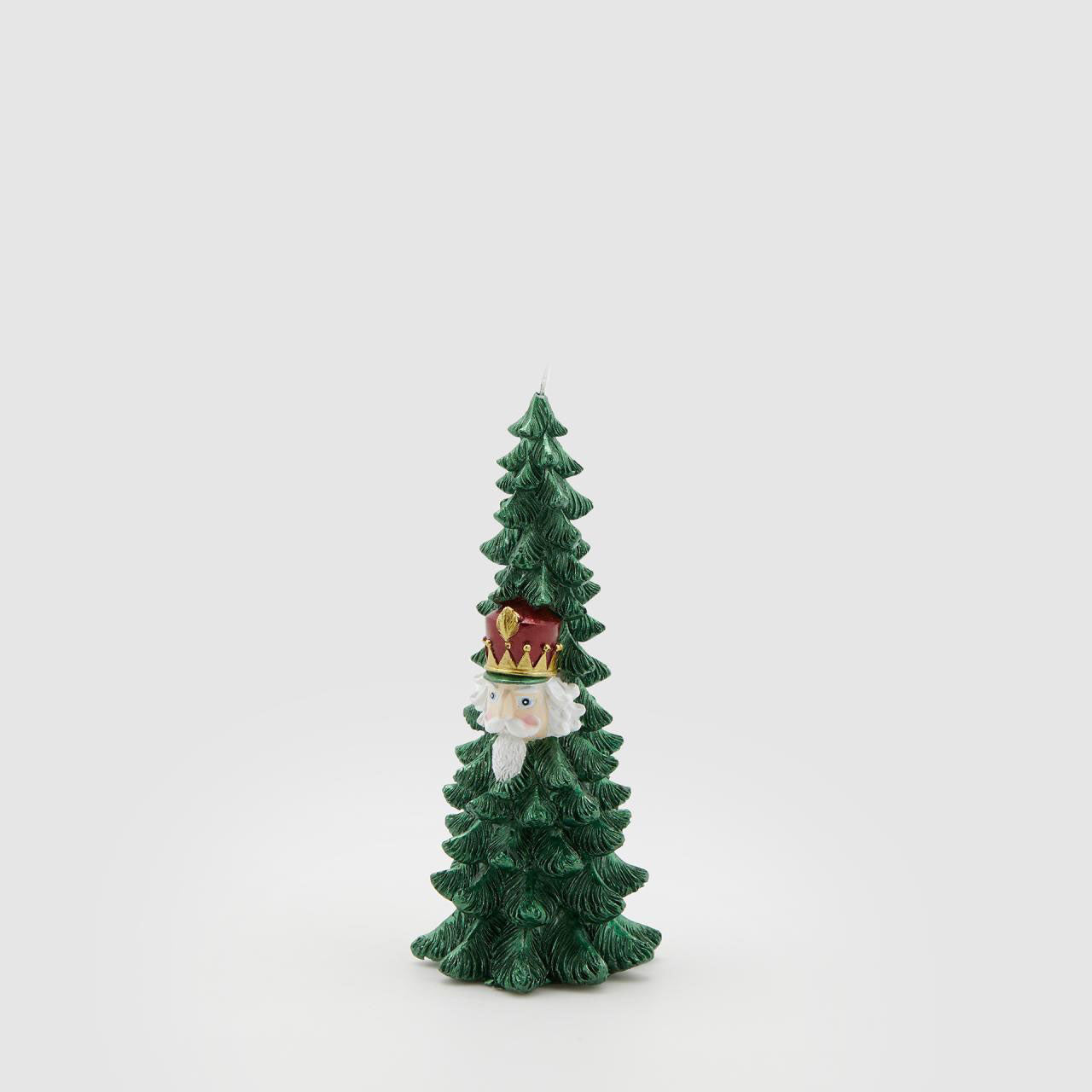 Christmas tree-shaped candle with toy soldier, ideal for decorating your rooms and creating a magical Christmas atmosphere during the holidays.