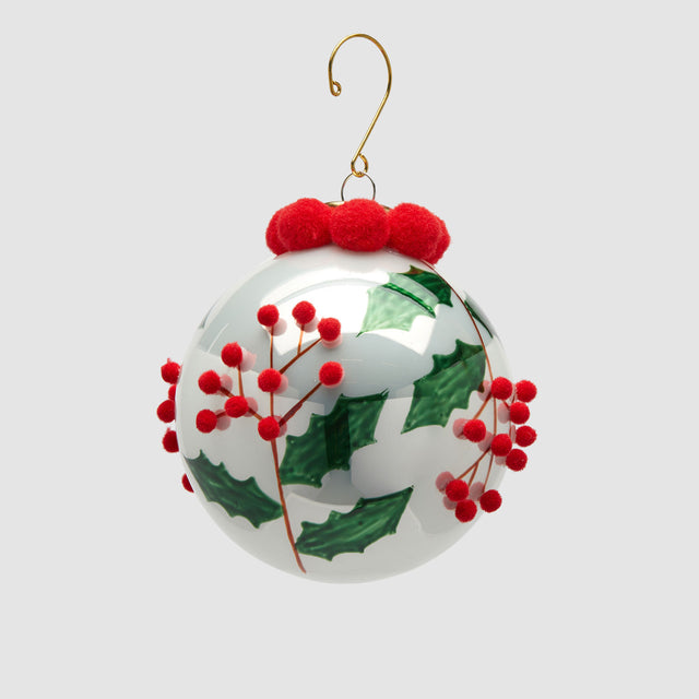 EDG Enzo De Gasperi Addobbo Pallina Sfera di Natale Agrifoglio 10cm Vetro