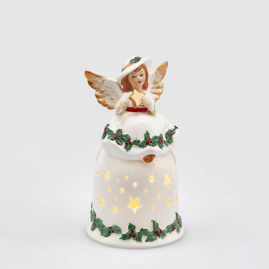 EDG Enzo De Gasperi Christmas Decoration Bell Angel Bell with LED 18cm Ceramic
