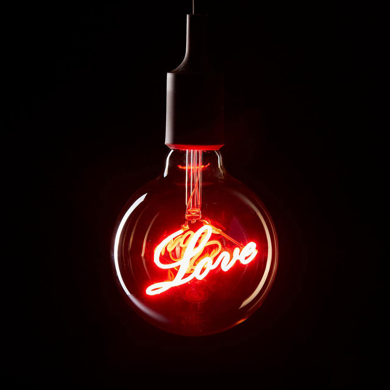EDG Enzo De Gasperi Light Bulb Written "Love" Red LED 12.5cm Glass