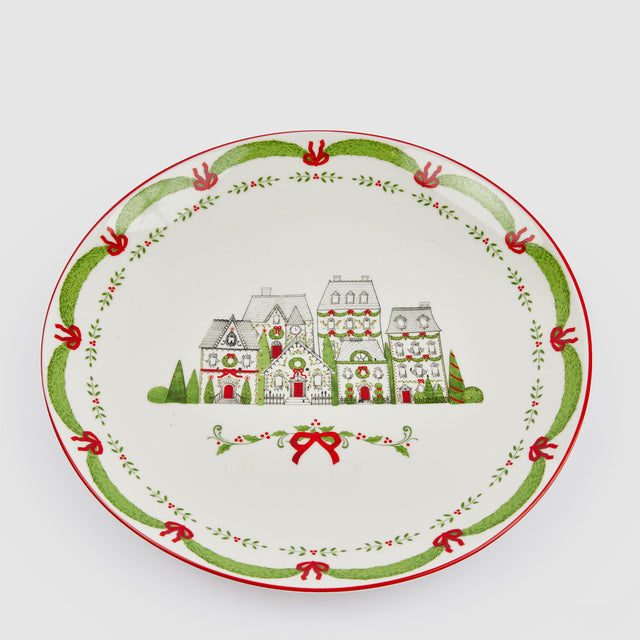Aggiungi un tocco di eleganza e nostalgia alla tua tavola natalizia con il piatto piano di Enzo De Gasperi! Realizzato in porcellana di alta qualità, questo piatto presenta un incantevole decoro vintage che raffigura adorabili case adornate con festosi addobbi natalizi.
