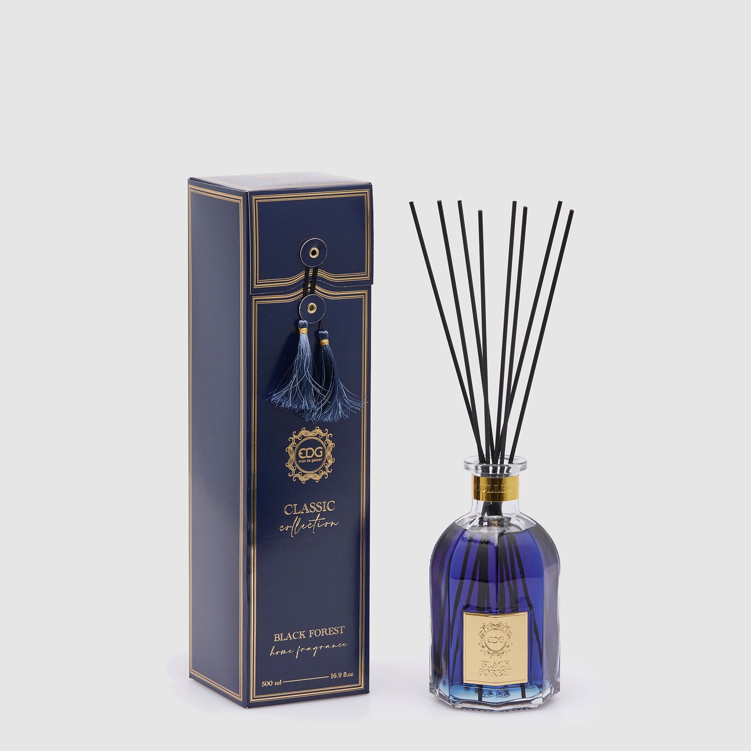 EDG Enzo De Gasperi Profumatore Diffusore con Bastoncini Bottiglia Classic 500ml Blu Black Forest