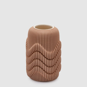 The lines of the vases made with a 3D printer recall the sand dunes worked by the wind. These works of art capture the essence of nature, transforming vases into sinuous and organic shapes, combining technological precision with nature-inspired beauty.