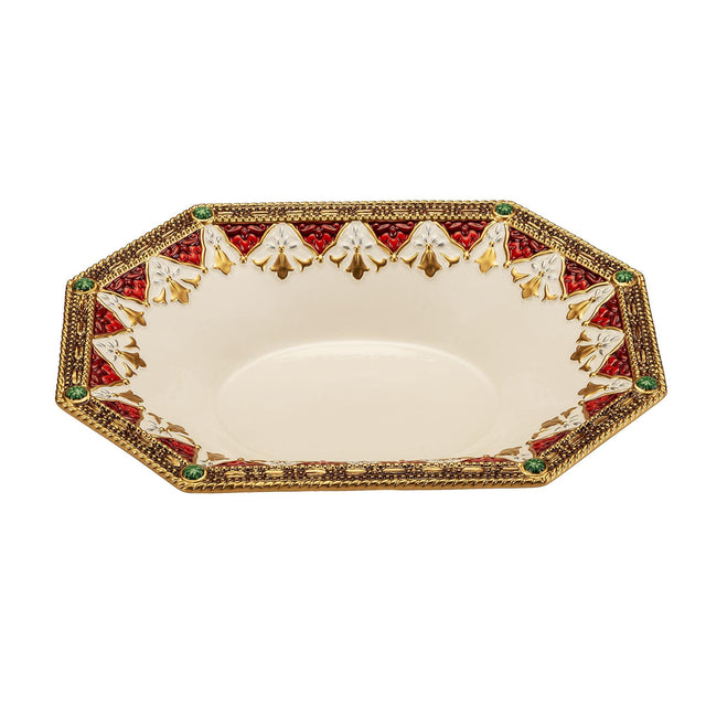 FITZ & FLOYD Coppa Ciotola Centrotavola Ovale 30x22cm Bordo Oro Porcellana Tavola di Natale