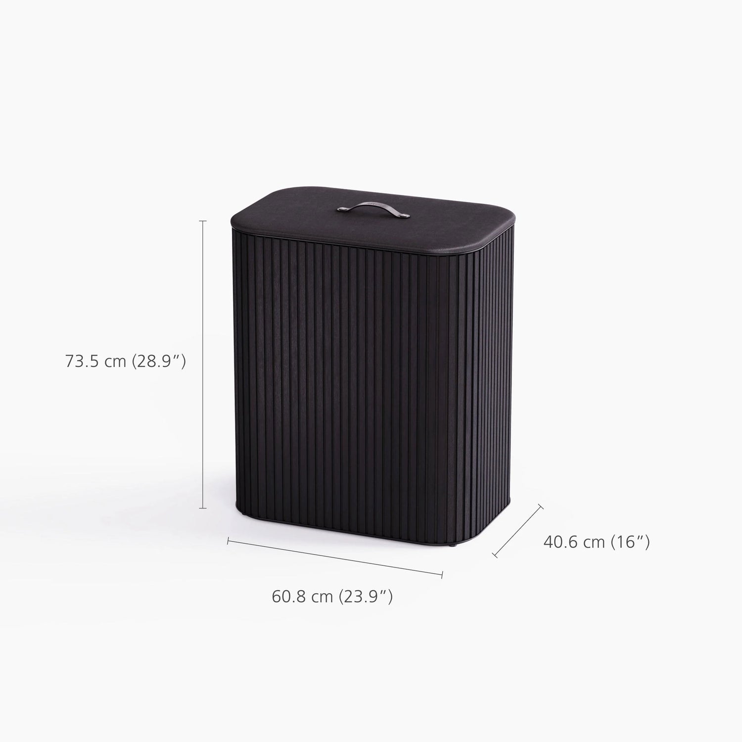 - Coperchio: tessuto con maniglia in pelle.
